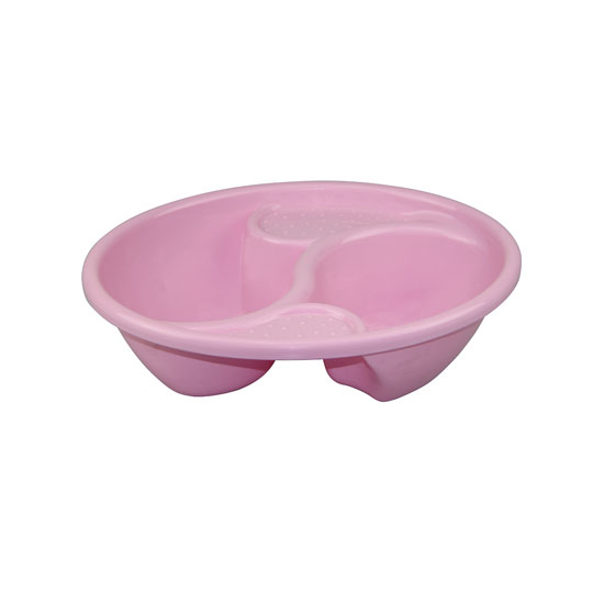 This is a wash basin that comes in a gentle pink color. With two containers, this wash basin is convenient and versatile. There are two platforms for putting soap and other items.