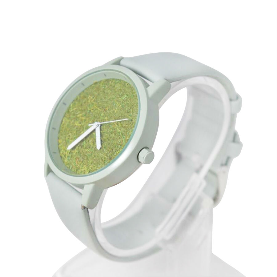 Constructed from 316 stainless steel, this wristwatch exudes a hint of chic with its minimalistic design. The numberless dial comes with a grass-like surface, which portrays comfortable, simple and relaxing movements of time with a straightforward display. The smooth genuine leather strap completes the sleek look of the watch and allows adjustable fit with the buckle fastening.
