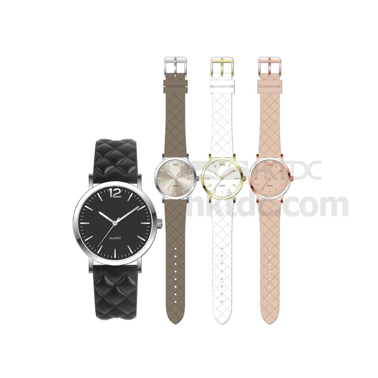 The featured watch has a round dial with baton hour markers and 3 hands. Its strap is adorned with diamond patterns and offers a flexible and comfortable fit. This watch ensures remarkable accuracy and is excellent for business, casual and daily use.