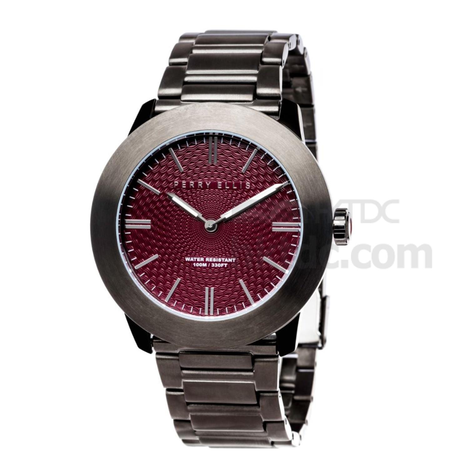 - Slim line men burgundy red pattern 46mm quartz stainless steel watch.