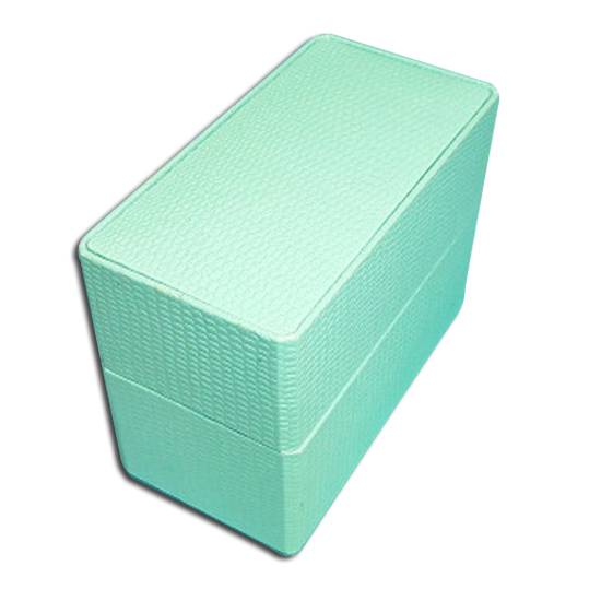 This watch box has a rectangular shape and sea green colour. It is decorated with diamond pattern on the box to add character to it. The colour is fresh and the design is simple yet elegant. It is an ideal protection for valuable watches.