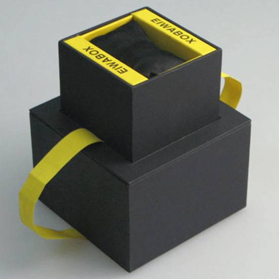 Featured is an exquisite watch box for gift presentation. It comes with a yellow ribbon which forms a striking contrast with the black exterior. This decent and elegant watch box makes a perfect item to house and display your timepiece in style.