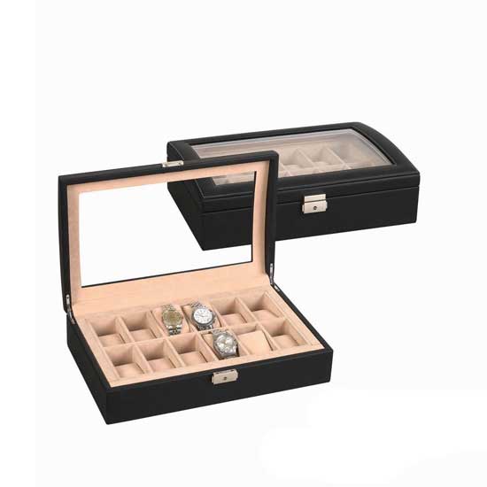 Presented to you is a watch box that boasts sturdy construction. This watch box comes with 12 compartments to store your precious watches in a dainty way. It is also designed with a lock for added safety.