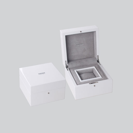 This watch box comes with a neat white design, accentuated by glossy silvery details. The box features one slot for one watch or one piece of jewelry. This jewelry box shows exquisite craftsmanship and is a good packing choice for the gift for your beloved ones.