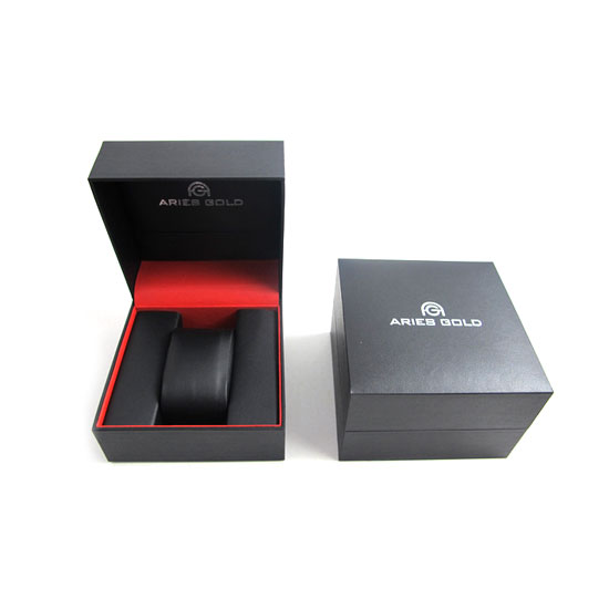 This is a watch box in allover black with a glossy finish. It is made of robust paper material with excellent workmanship. This watch box comes with a cushion inside for protecting your watch from scratches.