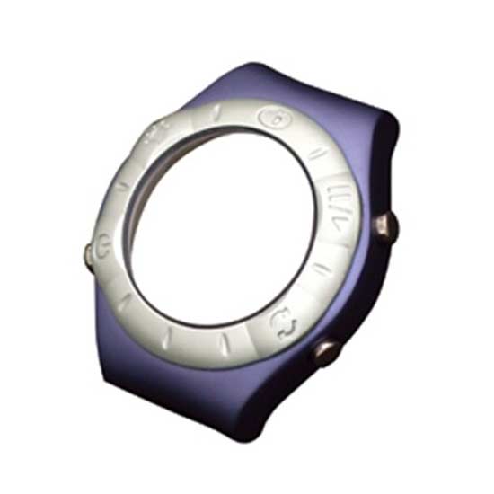 Displayed is an elegant aluminum watch case that boasts a brushed surface finish. This fine watch case is decorated by a bezel ring with markers. This classy watch case makes the perfect component for a beautiful wrist watch.