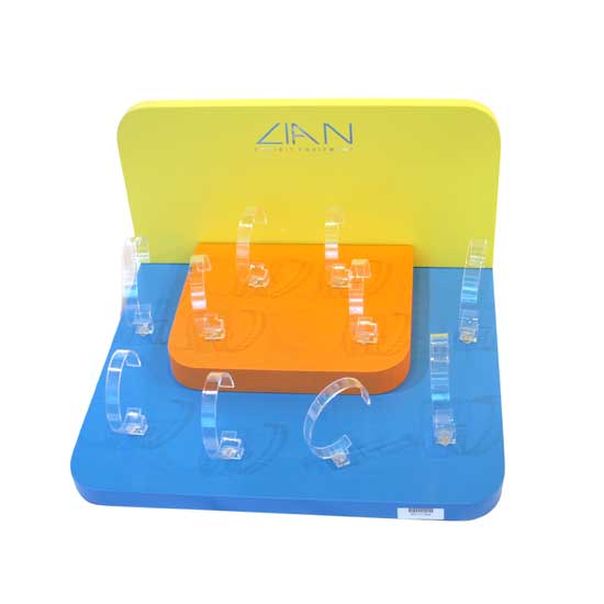 This watch display comes with a colorful structure with clear C-shaped holders. It features a durable wooden structure with a smooth finish. This refined display can show watches stylishly and is definitely great for countertops or watch showcases use.