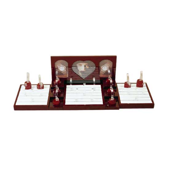 This is a watch display that comes with three major platforms. Featuring clear display stands, this unit can show multiple watches at the same time while giving each piece ample space. This watch display is made of high quality materials for durability.