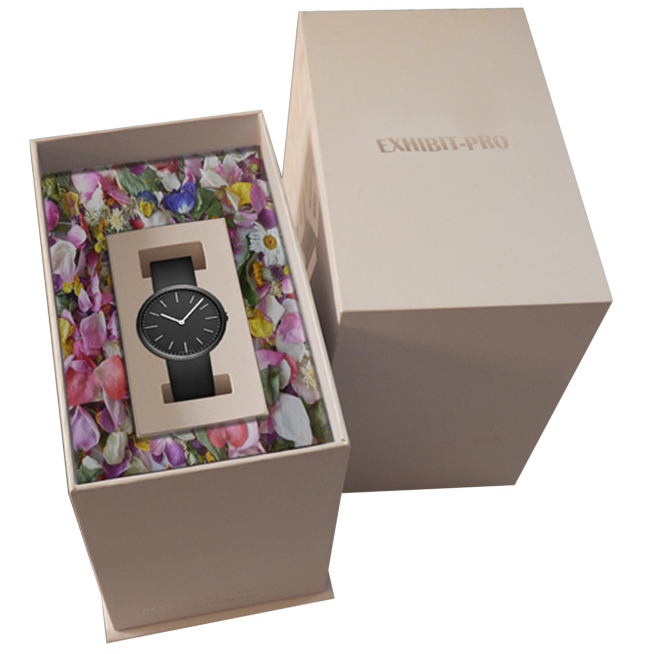 Present your gift watch with this quality packaging box. Made of 2.5mm cardboard and wrapped in art paper, this sturdy box promises both reliable and elegant storage. The vibrant floral insert keeps the watch in place and impresses the recipient once the box opened.