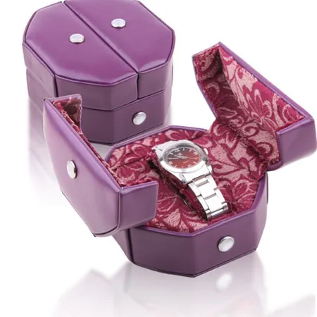 Envelop your timepiece in maximum protection with this watch box. Opening from both sides, this octagonal box displays a flock lined compartment that houses your favorite timepiece and keeps it from any bumps, scratches and dust for your peace of mind.