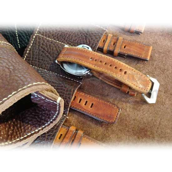 Displayed is a watch strap made of fine Italian leather. Available in different lengths, this watch strap is versatile enough to satisfy your requirements. With its natural color and soft touch, this watch strap is certainly a wise choice.