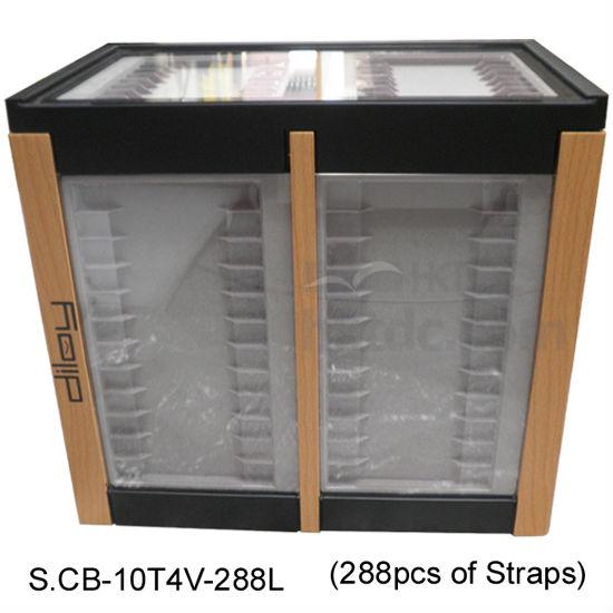 Have this decent and practical wooden watch strap cabinet to store and display your favorite watch straps. This square case comes in top and sideways windows for displaying the straps in rows. It possesses a large capacity that holds up to 288 pieces of straps. Get this rugged one for your watch band collection.