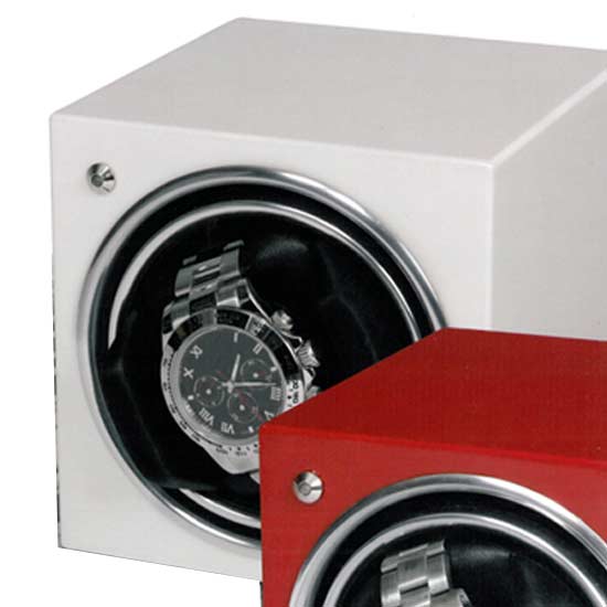 Shown here is a watch winder with a cube design. Different colors are available for your selection. The exceptional durability makes it stand above the rest.
