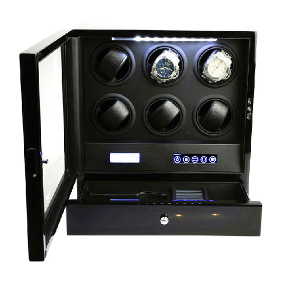 This watch winder is specially designed for keeping your automatic watch running when not worn. The watch winder features six watch winding slots and a drawer. It also displays your treasured timepiece collection with its delicate liquid crystal window display.