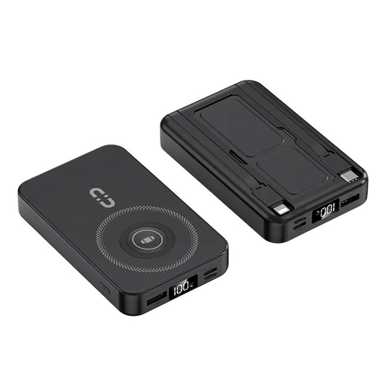 Watch Wireless Power Magnetic Power Bank Slim Size 22.5W 10000mAh with Digital Display Hidden Bracket Built-in Cables
