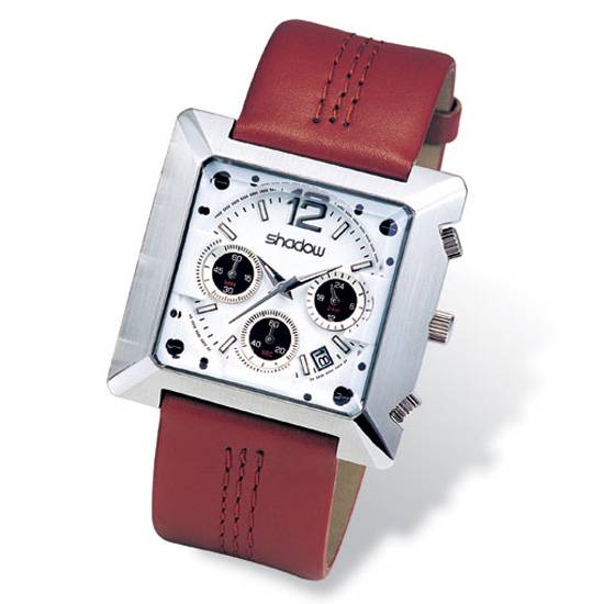 This is a clock-movement watch with square metallic case. There are international hours and date display available on the watch dial. The watch band has 3 tone-on-tone stitchings in the middle as decoration. It always fits for successful men.