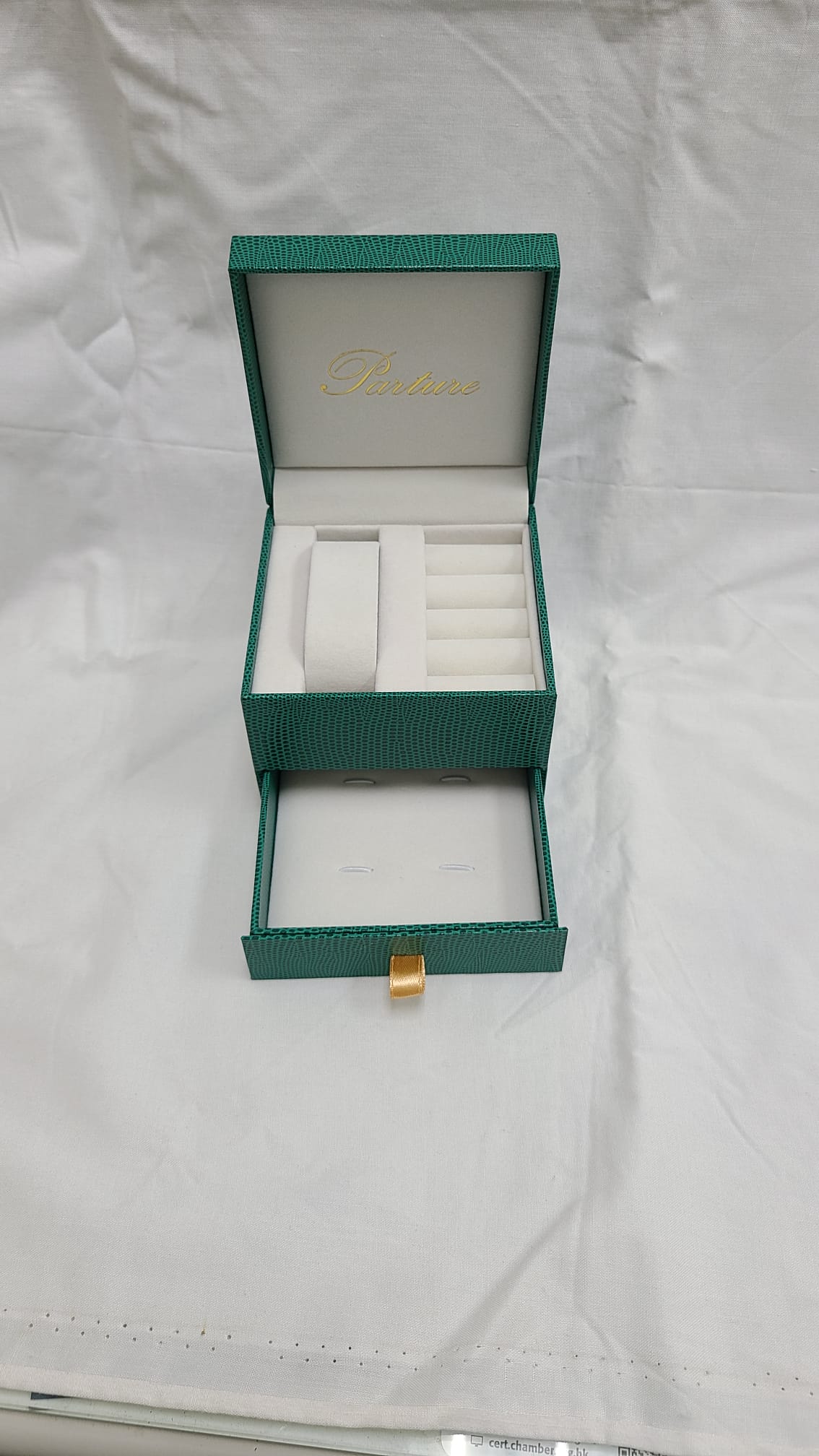 Plastic Watch Box, outside material is leatherette, inside material is flocked, insert for 1 C-ring & 4 rings.