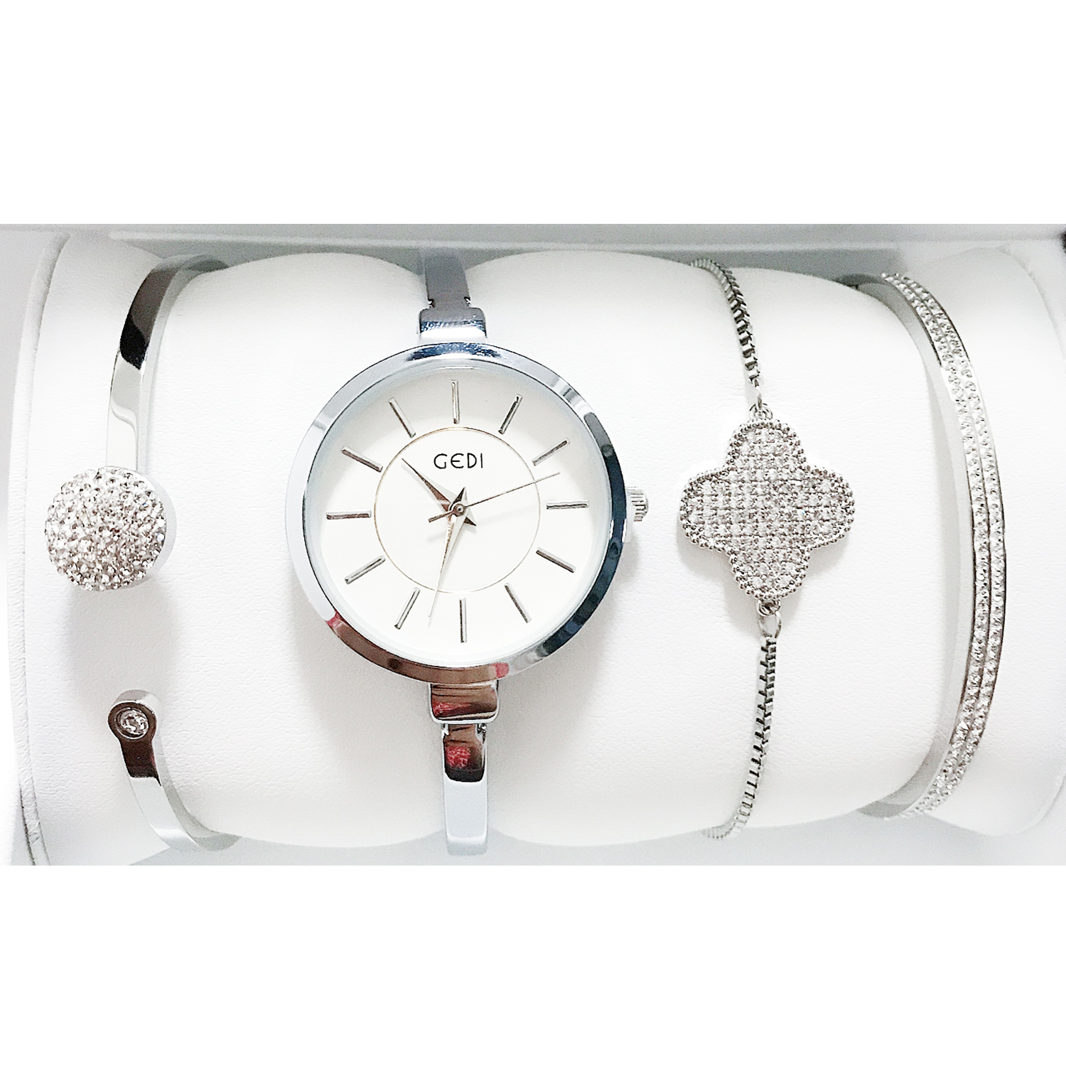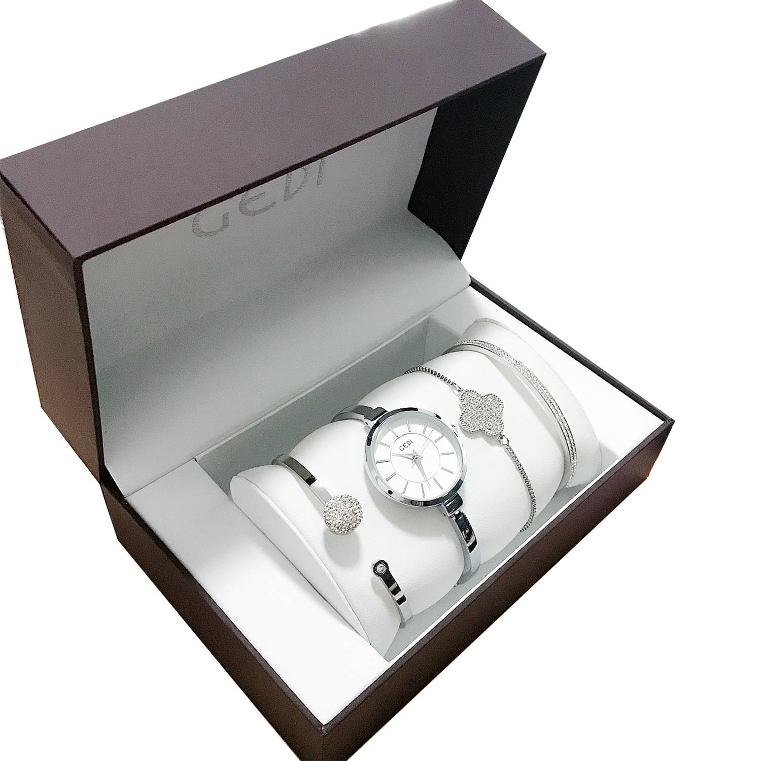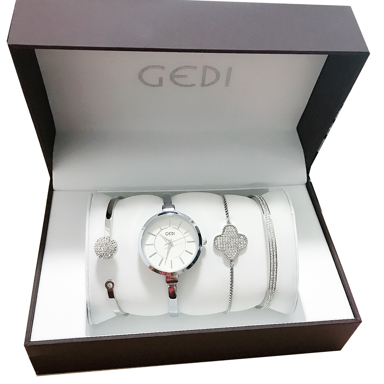 Highlighted here is a set of ladies fashion watch with an alloy case & band and stainless steel jewelry with good long lasting plating. Different models and colors of bracelet & bangle jewelry are available. Feel free to change the combination of the gift set from our collection in your respective orders.