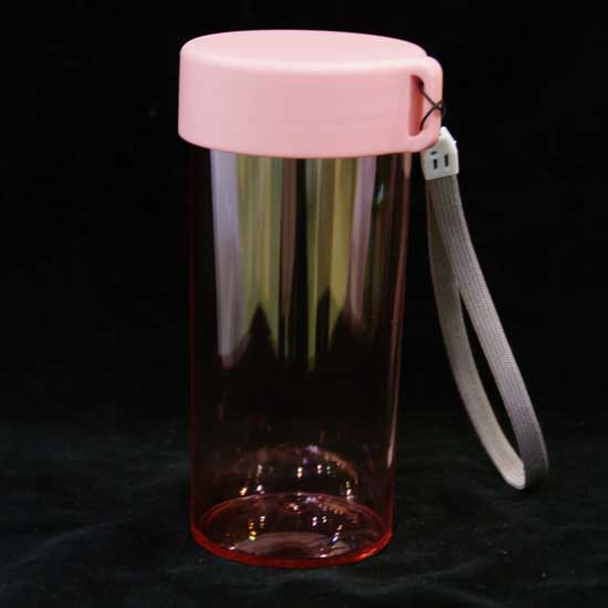 The water bottle boasts a plastic construction for enhanced durability. Different colors are available for your selection. It comes with a hand strap for easy carrying.