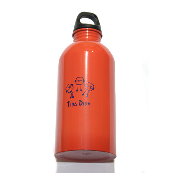 Displayed is a water bottle with a stainless steel body for enhanced durability and impact-resistance. The bottle is suitable for outdoor usage thanks to its sturdiness and capacity. Customized logos can be made on the bottle for enhanced brand name promotion.