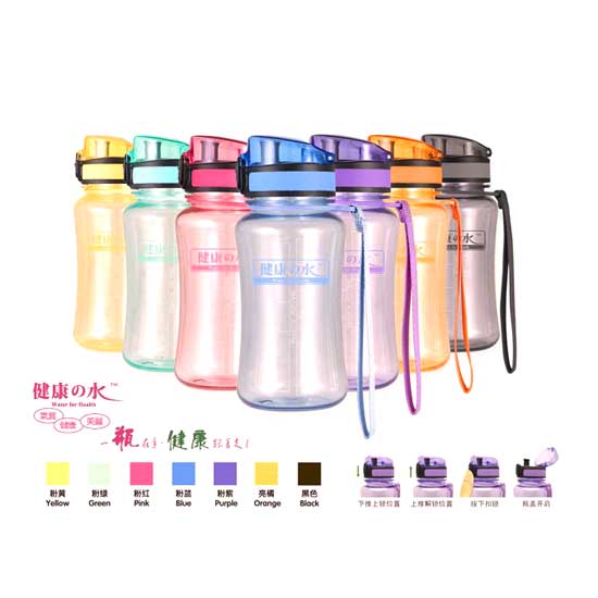 This 12oz/350ml water bottle is made of U.S. Food and Drug Administration (FDA and LFGB) approved material to guarantee safety. It features a unique lid to ensure ease of use and leak resistance. The strap design allows users to carry it around easily.