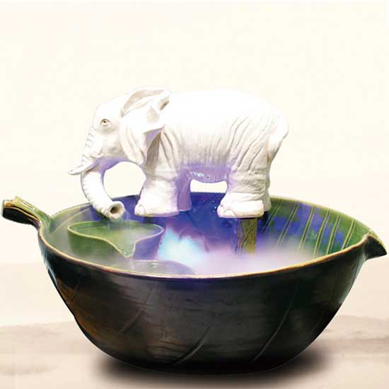 The water fountain comes in a bowl shape with an elephant decorative figure. It features a high-quality ceramic construction with a polished finish. This water fountain is an ideal decorative item for households, hotels, clubs, etc.
