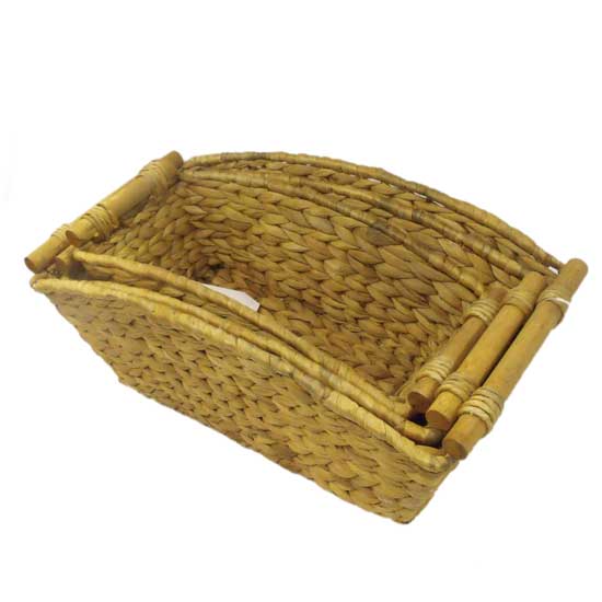 Displayed here is a storage basket with water-hyacinth construction. It is durable and eco-friendly. This water-hyacinth basket is ideal for holding miscellaneous items.