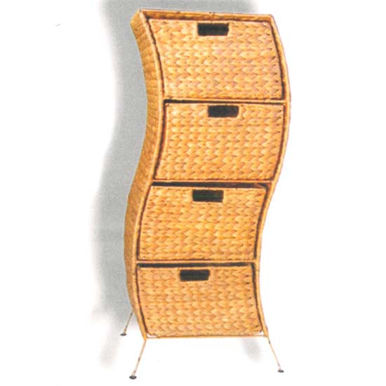 Shown here is a water hyacinth cabinet with a unique and stylish wave-shape design. The quality water hyacinth construction is good for heavy-duty work. This robust water hyacinth cabinet is a great accessory to keep your home well-organized.