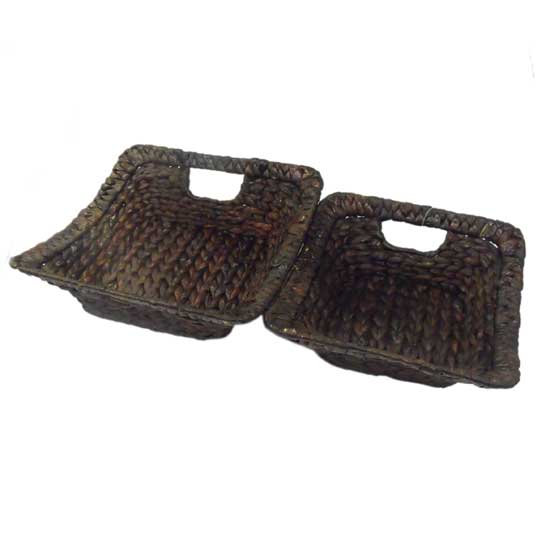 These two square-shaped baskets are finely woven from water lettuce. They are perfect for serving fruit and snacks. Bring a natural touch to your home with these water lettuce baskets.