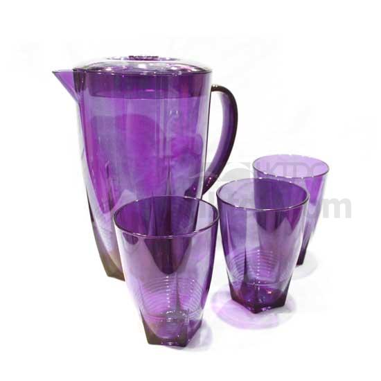 This water pot set is comprised of a water pot and several cups. They feature a transparent purple appearance for a brilliant touch. Made of porcelain, this water pot set is sure to last for a long time.
