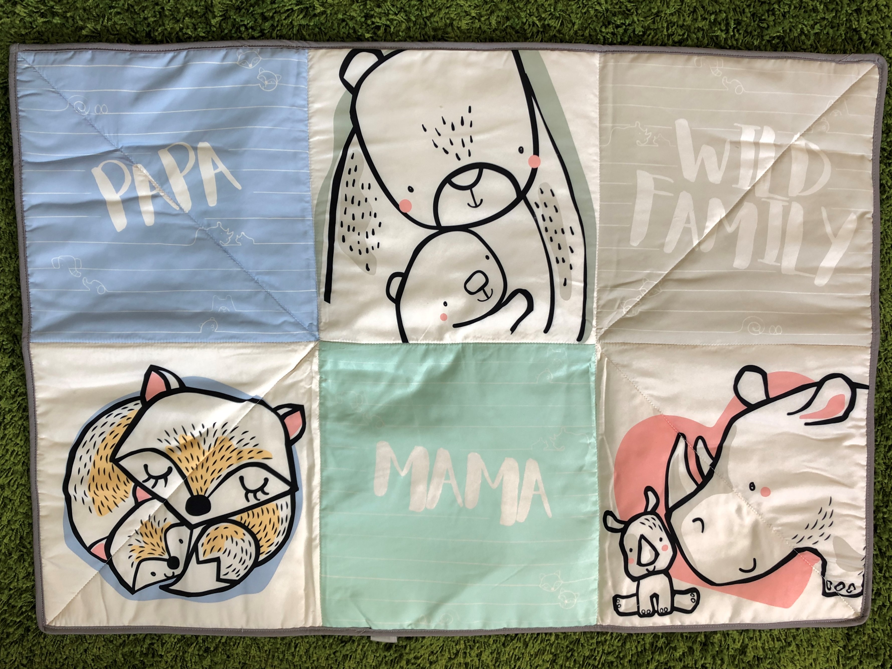 • 2-in-1 playmat with water resistant fabric and use as diaper bag when folded up