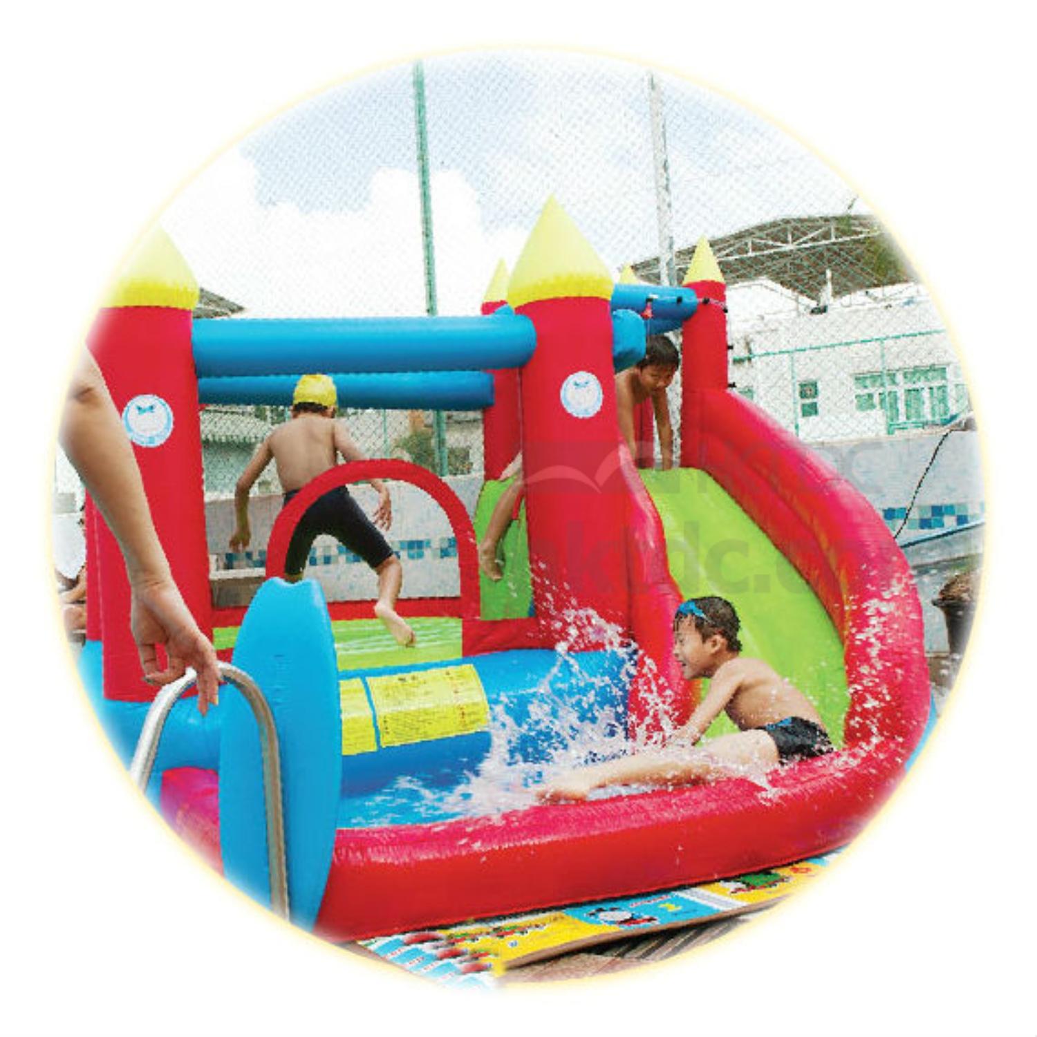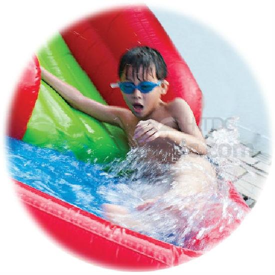 Inflatable Water Slide Castle Bouncer, shallowness pool with external splash system and "Slam Dunk" basketball combo