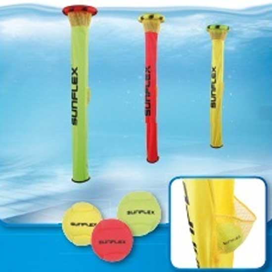 Displayed is a water tube game that comes with a tubes and balls made of neoprene for durability. With a fun design, this game is easy to play and brings you a lot of joy. This game is ideal for children in the pool.