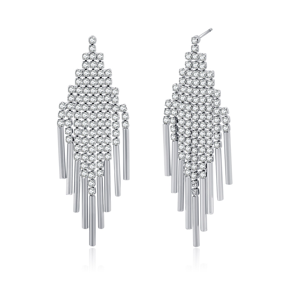 These stunning Waterfall Crystal Dangle Earrings are sure to dazzle and shine in any room, as it features a brilliant crystal embellished at the base of these lustrous rhodium-plated earrings. Excellent sparkle, truly eye-catching!