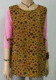 Demonstrated is a classy bib apron in bright colored appearance.