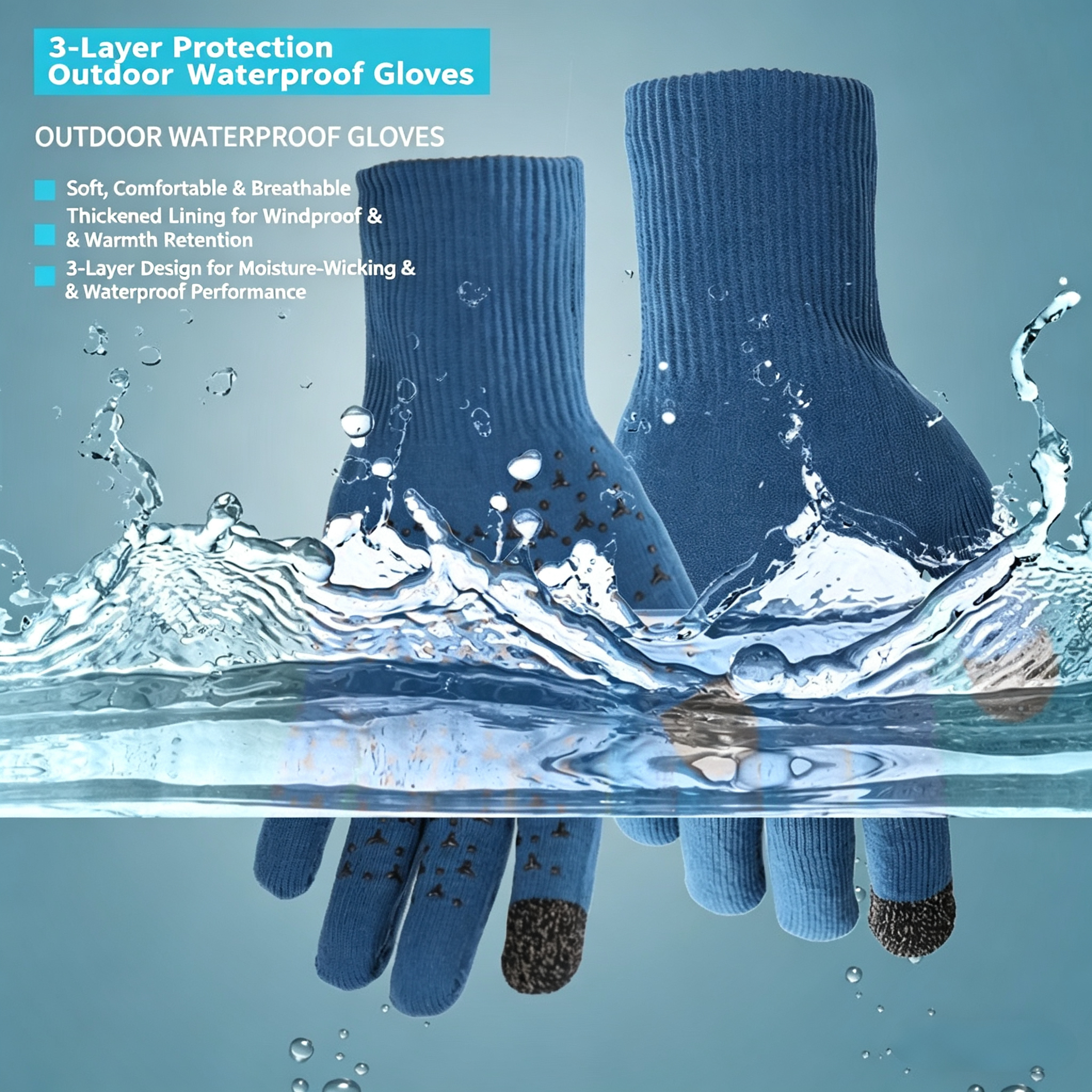 waterproof knit gloves, 3-layer waterproof gloves, touchscreen winter gloves, anti-slip waterproof gloves, water sports gloves, outdoor waterproof gloves, windproof warm gloves, fishing gloves, hiking gloves, cycling gloves, breathable waterproof gloves