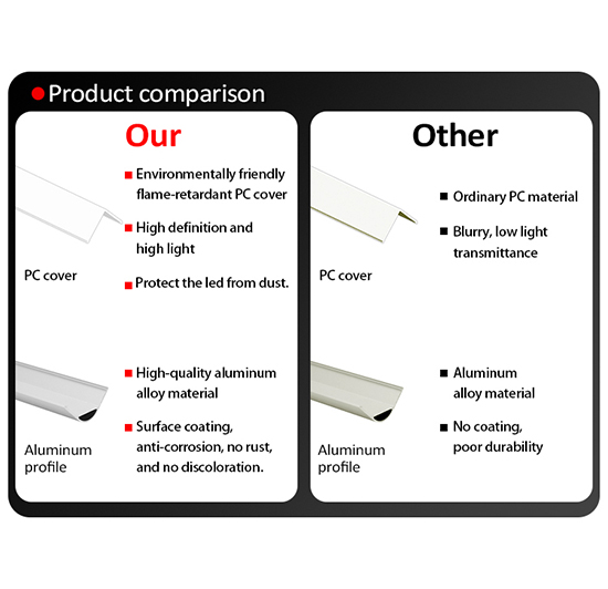 1. Aluminum profile: It's made of high quality aluminum alloy 6063-T5 material, surface coating, anti-corrosion, no rust and no discoloration.