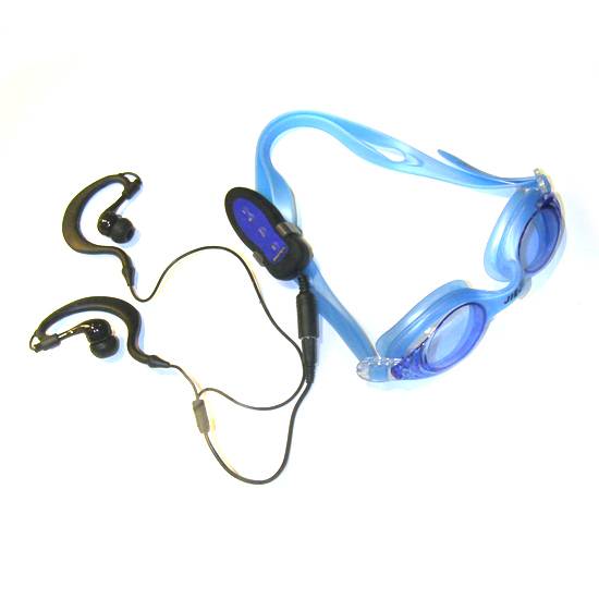 Featured is a goggle-mount type MP3 player. It is waterproof for maximum 3 meters of water level. It provides various ear sizes for different users.