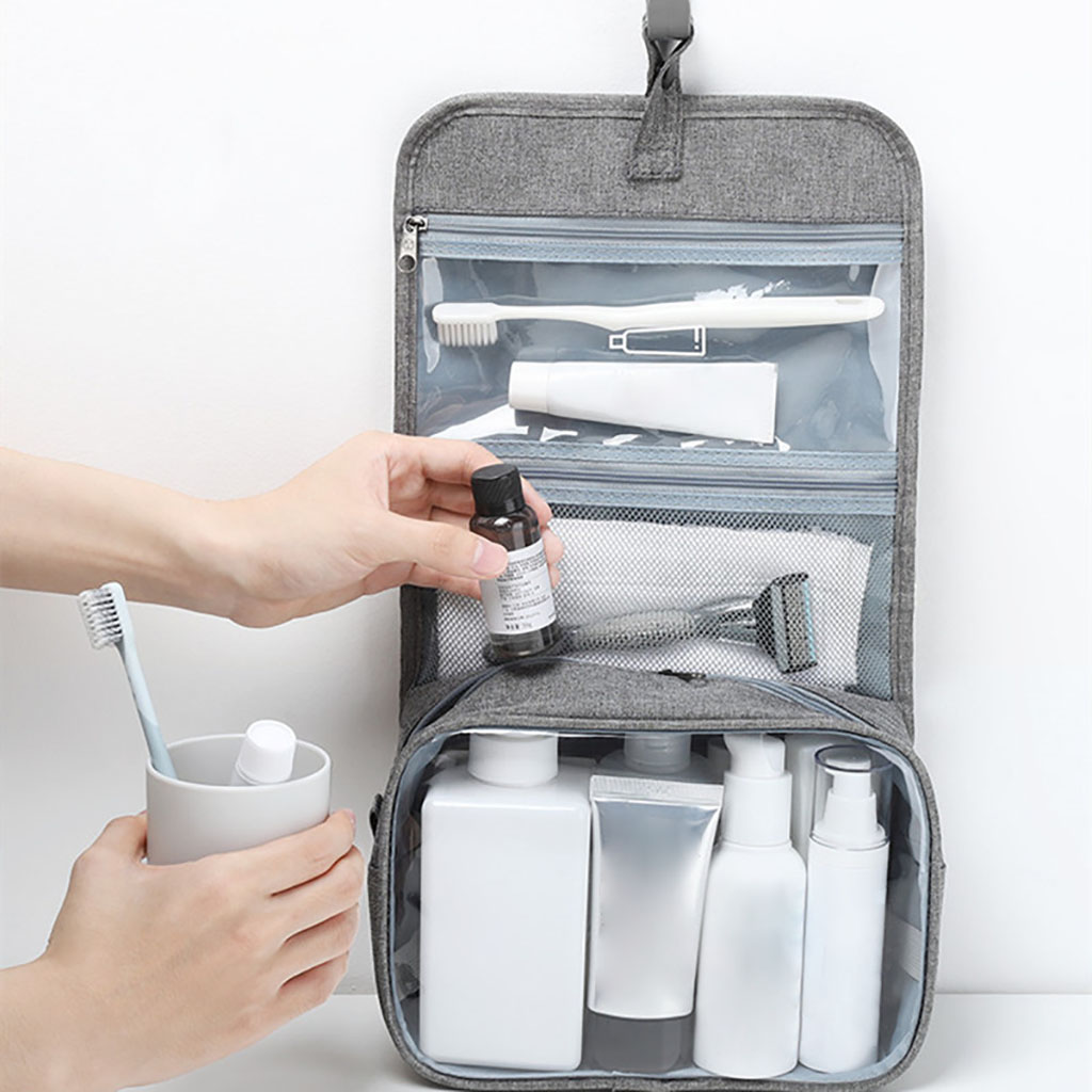 Waterproof Portable Toiletry Storage Bag with Transparent Compartments includes the following features :