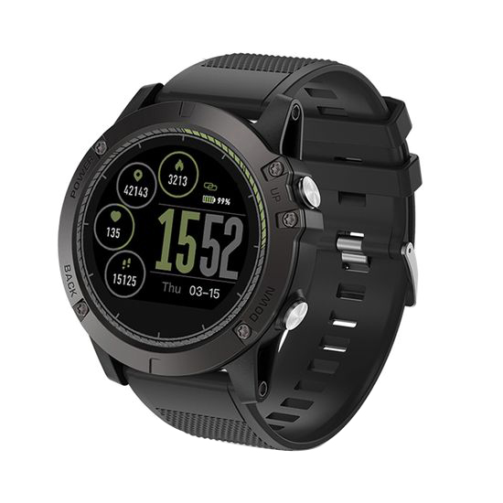 This 5 ATM waterproof smart watch has a drilling carbon coating (DLC) case with a TPU strap and is equipped with a 1.22 inch IPS color display. It can be used to monitor heart rate and provides versatile functions including all-day activity tracking, multi-sensors, mobile alerts, pedometer, sleep monitor and more. The smart watch ensures accurate time keeping and is excellent for sports and outdoor activities.