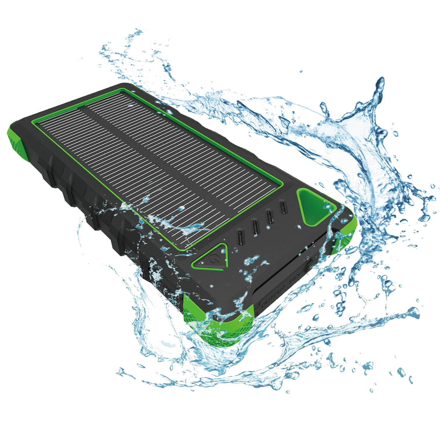 1. Rainproof Dustproof Shockproof design Solar Power Charger 2. 16000mAh capacity can charge most mobile phones over twice. 3. Using High temperature resistant Grade A Li-polymer cells 4. Manufactured by ISO:9001:2008 approved factory. 5. LED torch/ Caution Light/ SOS 3in1. 6. Universal Solar power charger for smartphones, tablets, MP3 and other devices using 5V power. Specifications: Capacity 16000mAh Battery cell High temperature resistant Li-polymer cell USB Output Dual USB: 5V1A + 5V 2.4A Micro USB input 5V2A Recharge cycels 500+ LED indicators 4 Solar Panel Power 5V 200mA Color