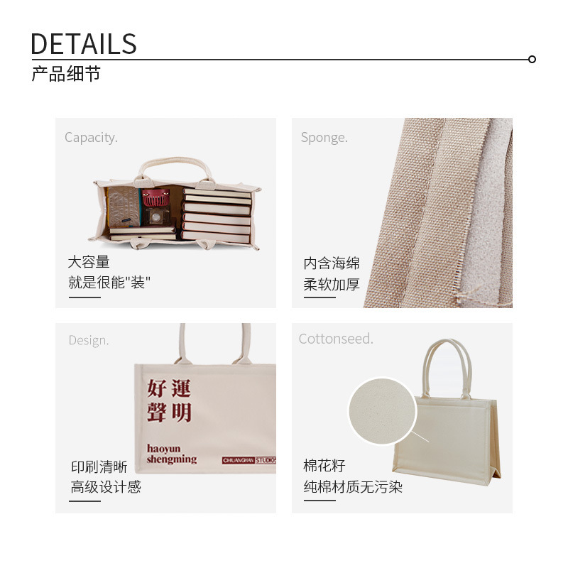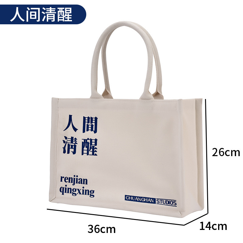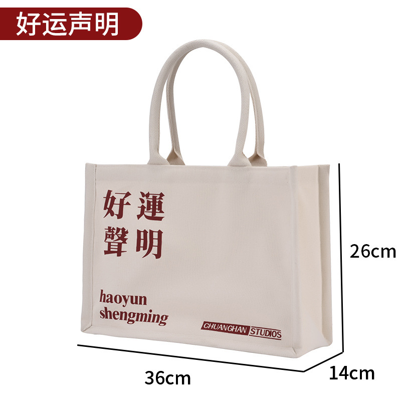 • WASHING NOTICE: cleaning of 100% cotton bags is not recommended. The washing shrinkage rate exceeds 10%. Should it be seriously dirty, it is recommended to wash it in cold water by hand. Hang dry is necessary before high- temperature ironing. Please notice that the fabric may not return to the original flatness. Flash drying and machine wash shall be prohibited.