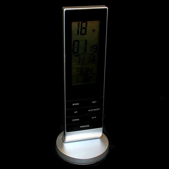 This weather station clock comes in a long and slim design for added stylishness. The thermometer measures the temperature and relative humidity instantly. The alarm clock feature adds functionality to the item.