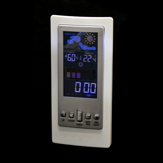 This stylish and weather station clock features a sleek housing and a large LCD display. The versatile clock is able to show current time, temperature, humidity and weather forecast. The reliable weather station clock boasts a long service life.