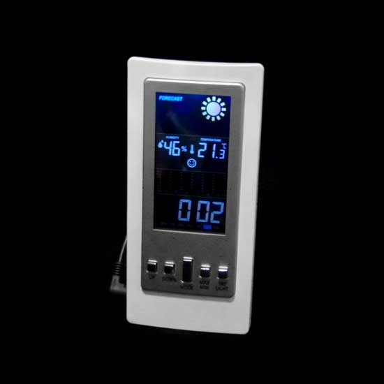 This well-designed weather station clock displays the time, temperature, humidity and more. The white rectangular clock goes well with different contemporary settings. It is sturdily constructed for extended durability.