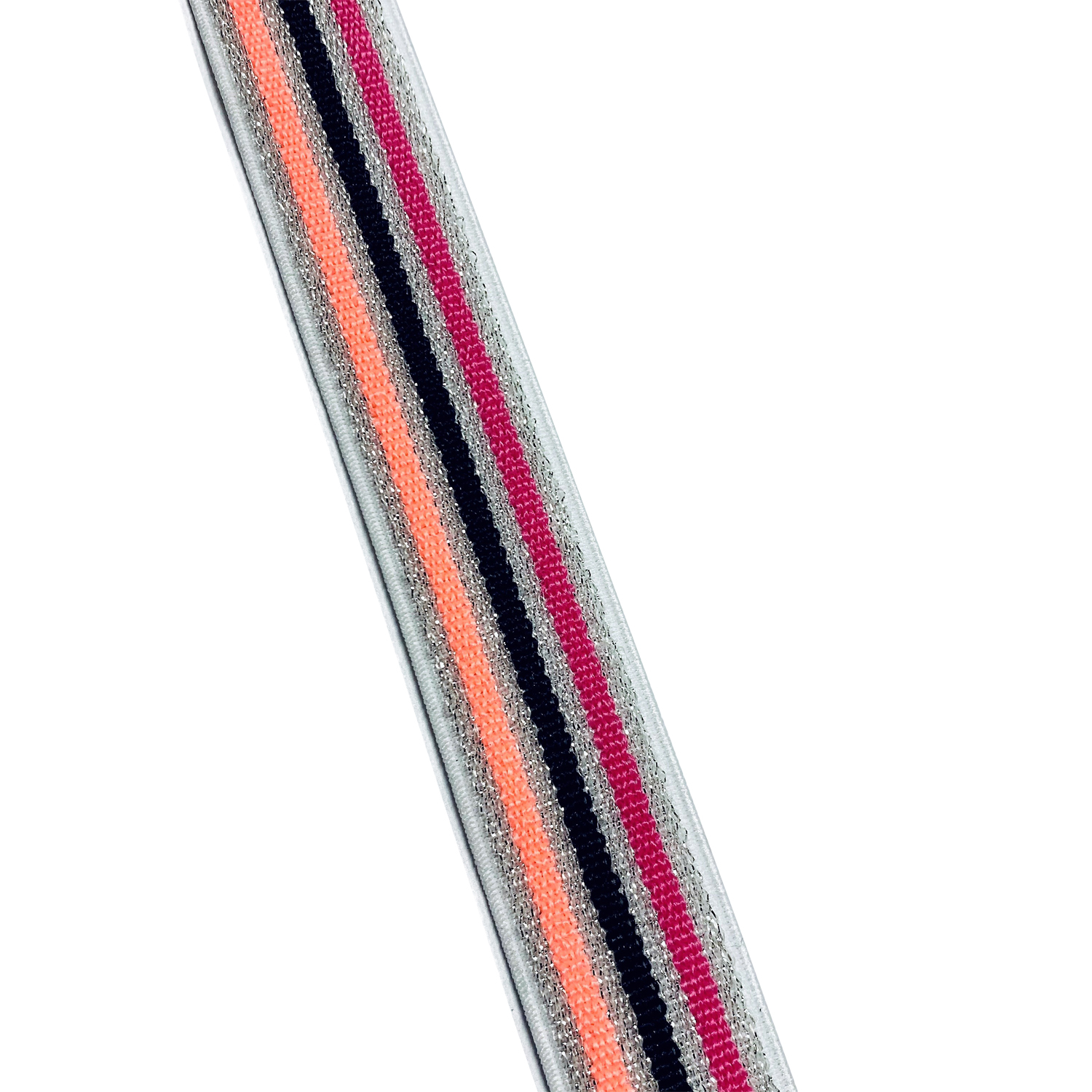 • A multi-color webbing with a vibrant and partly sheeny design.