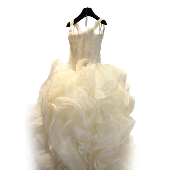 This elegant white wedding dress comes with exquisite craftsmanship and delicate patterns. It is made of quality materials for a comfortable touch. This gorgeous wedding dress showcases exceptional style and elegance.