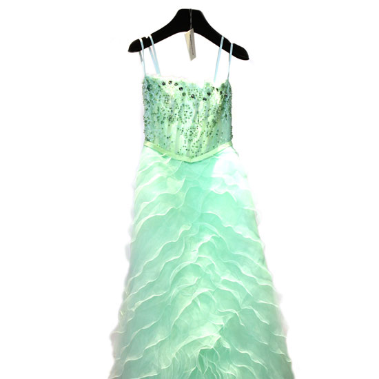 This is a green wedding dress with an elegant and fashionable design. It is made of quality materials for a comfortable touch. Featuring a slim-fit design, it showcases your alluring silhouette nicely.