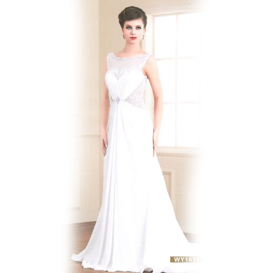 This wedding dress is made of quality material for a natural texture. It is finely crafted with refined details. The elegant pleated details on the front add a touch of style to the whole piece.