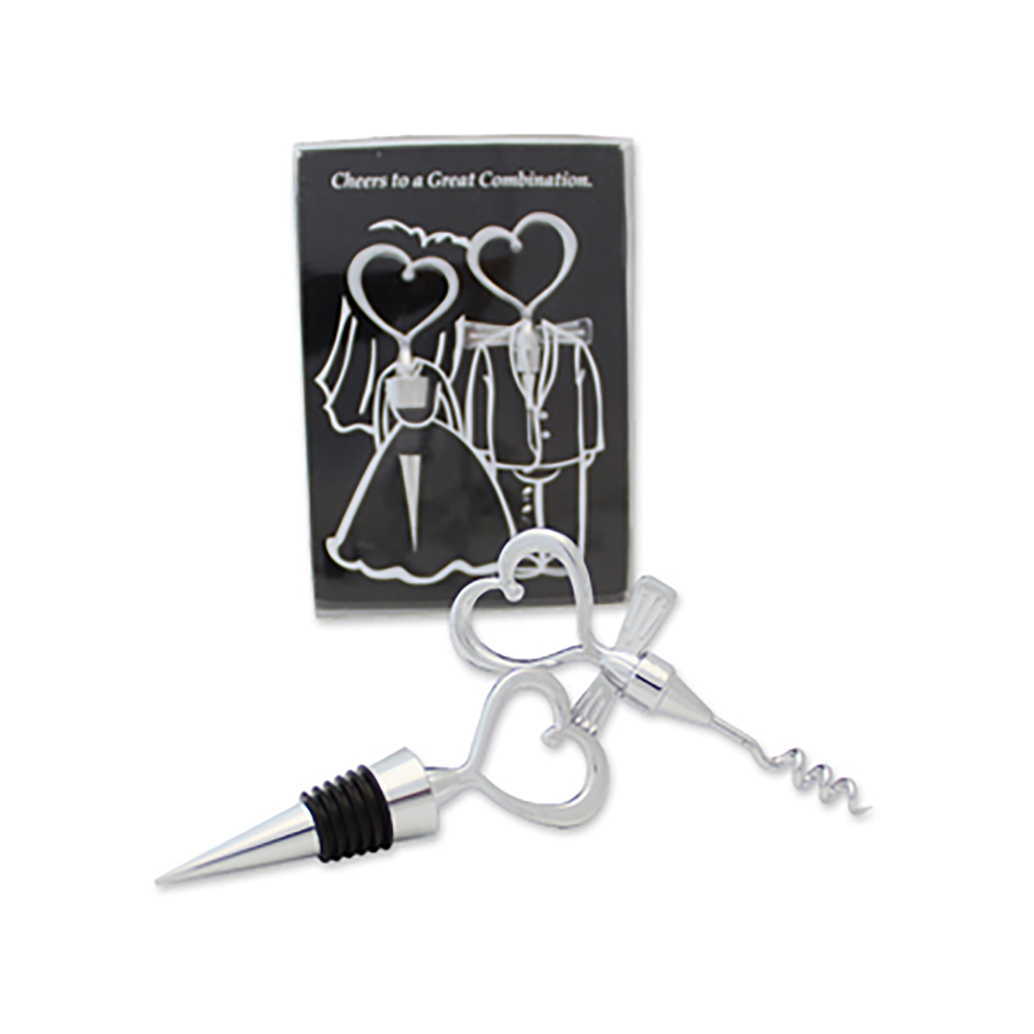 • Wine set includes heart bottle stopper and "tuxedo tie" heart corkscrew.